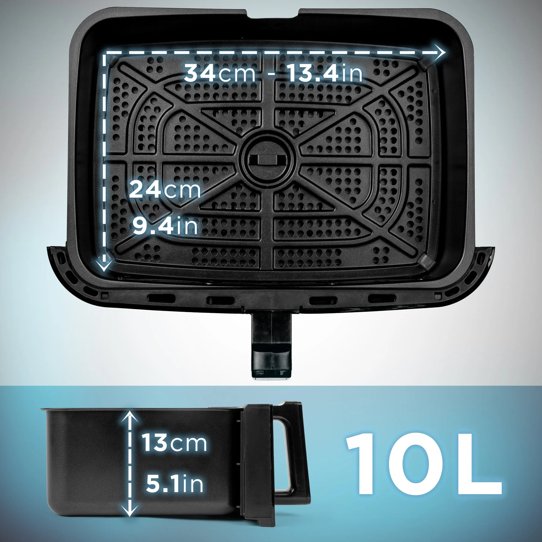 Duronic AFD1 Großer Schublade 10L - Erweitern Sie Ihre Kochmöglichkeiten: Entdecken Sie die Duronic AFD1 Große Schublade mit 10 Litern Fassungsvermögen - die perfekte Ergänzung für Ihre Duronic Heißluftfritteuse AF24 (nicht enthalten). Diese Schublade ermöglicht es Ihnen, größere Mengen an köstlichen Gerichten zuzubereiten und ist speziell für Familien oder größere Gruppen geeignet. Die AFD1 Schublade ist jedoch im Lieferumfang der Duronic AF34 enthalten. Optimales Fassungsvermögen für Familienmahlzeiten: Mit den Maßen 38.8x32x14 cm bietet die Duronic AFD1 Große Schublade ausreichend Platz, um große Mengen an Lebensmitteln zuzubereiten. Dies macht sie zur idealen Wahl für Familien oder Veranstaltungen, bei denen Sie leckere Gerichte in größeren Mengen genießen möchten. Egal ob knusprige Pommes Frites, Hähnchenflügel oder Gemüse - mit dieser Schublade sind Ihren kulinarischen Kreationen keine Grenzen gesetzt. Einfache Reinigung und Kompatibilität: Die Duronic AFD1 Große Schublade ist äußerst benutzerfreundlich und leicht zu reinigen. Sowohl die Schublade als auch das Innenfach sind spülmaschinenfest, was die Reinigung nach dem Kochen zum Kinderspiel macht. Diese praktische Funktion spart nicht nur Zeit, sondern gewährleistet auch eine hygienische Zubereitung Ihrer Mahlzeiten. Kochen auf größeren Skalen mit gesunden Ergebnissen: Die Duronic AFD1 ermöglicht es Ihnen, gesunde Mahlzeiten in größeren Mengen zuzubereiten. Mit einer Kapazität von 10 Litern können Sie köstliche und fettarme Gerichte für Ihre Familie und Freunde zubereiten. Nutzen Sie die volle Leistung der Duronic Heißluftfritteuse AF24 und genießen Sie gesunde und knusprige Ergebnisse auf einer größeren Skala. Speziell für Sync Cook Funktion der AF24 geeignet: Die Duronic AFD1 Große Schublade ist exklusiv für die Sync Cook Funktion der Duronic Heißluftfritteuse AF24 konzipiert. Diese intelligente Funktion ermöglicht es Ihnen, verschiedene Gerichte in beiden Schubladen gleichzeitig zuzubereiten, die zur gleichen Zeit fertig sind. Nutzen Sie die Erweiterungsmöglichkeiten dieser Schublade und erleben Sie vielfältiges Kochen auf eine ganz neue Art und Weise.
