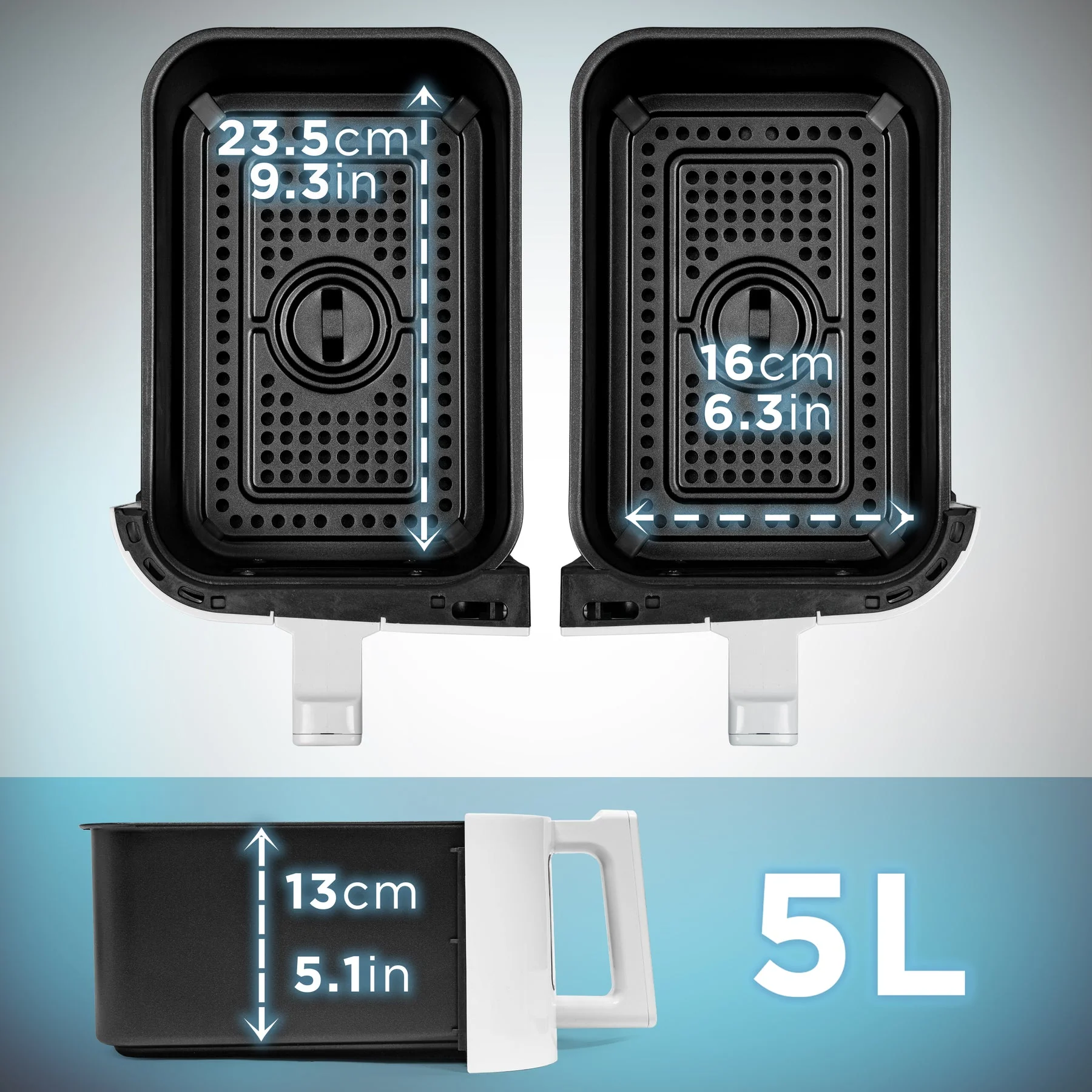 Duronic AFD2 Extra Schubladen mit 5L, erweitern Sie Ihre Kochmöglichkeiten: Entdecken Sie die Duronic AFD1 extra Schubladen mit 5 Litern Fassungsvermögen, die perfekte Ergänzung für Ihre Duronic Heißluftfritteuse AF14 (nicht enthalten). Diese Schubladen ermöglichen es Ihnen, größere Mengen an köstlichen Gerichten zuzubereiten und sind speziell für Familien oder größere Gruppen geeignet. Die AFD2 Schubladen sind jedoch im Lieferumfang der Duronic AF34 enthalten. Optimales Fassungsvermögen für Familienmahlzeiten: Mit den Maßen 23,5 x 16 x 14 cm bieten die Duronic AFD2 extra Schubladen ausreichend Platz, um große Mengen an Lebensmitteln zuzubereiten. Dies machen sie zur idealen Wahl für Familien oder Veranstaltungen, bei denen Sie leckere Gerichte in größeren Mengen genießen möchten. Egal ob knusprige Pommes Frites, Hähnchenflügel oder Gemüse, mit dieser Schublade sind Ihren kulinarischen Kreationen keine Grenzen gesetzt. Einfache Reinigung und Kompatibilität: Die Duronic AFD2 Schubladen sind äußerst benutzerfreundlich und leicht zu reinigen. Sowohl die Schublade als auch das Innenfach sind spülmaschinenfest, was die Reinigung nach dem Kochen zum Kinderspiel macht. Diese praktische Funktion spart nicht nur Zeit, sondern gewährleistet auch eine hygienische Zubereitung Ihrer Mahlzeiten. Kochen auf größeren Skalen mit gesunden Ergebnissen: Die Duronic AFD2 ermöglichen es Ihnen, gesunde Mahlzeiten in größeren Mengen zuzubereiten. Mit einer Kapazität von 2 x 5 Litern können Sie köstliche und fettarme Gerichte für Ihre Familie und Freunde zubereiten. Nutzen Sie die volle Leistung der Duronic Heißluftfritteuse AF14 und genießen Sie gesunde und knusprige Ergebnisse auf einer größeren Skala. Speziell für Sync Cook Funktion der AF14 geeignet: Die Duronic AFD2 Schubladen sind exklusiv für die Sync Cook Funktion der Duronic Heißluftfritteuse AF14 konzipiert. Diese intelligente Funktion ermöglicht es Ihnen, verschiedene Gerichte in beiden Schubladen gleichzeitig zuzubereiten, die zur gleichen Zeit fertig sind. Nutzen Sie die Erweiterungsmöglichkeiten dieser Schublade und erleben Sie vielfältiges Kochen auf eine ganz neue Art und Weise.