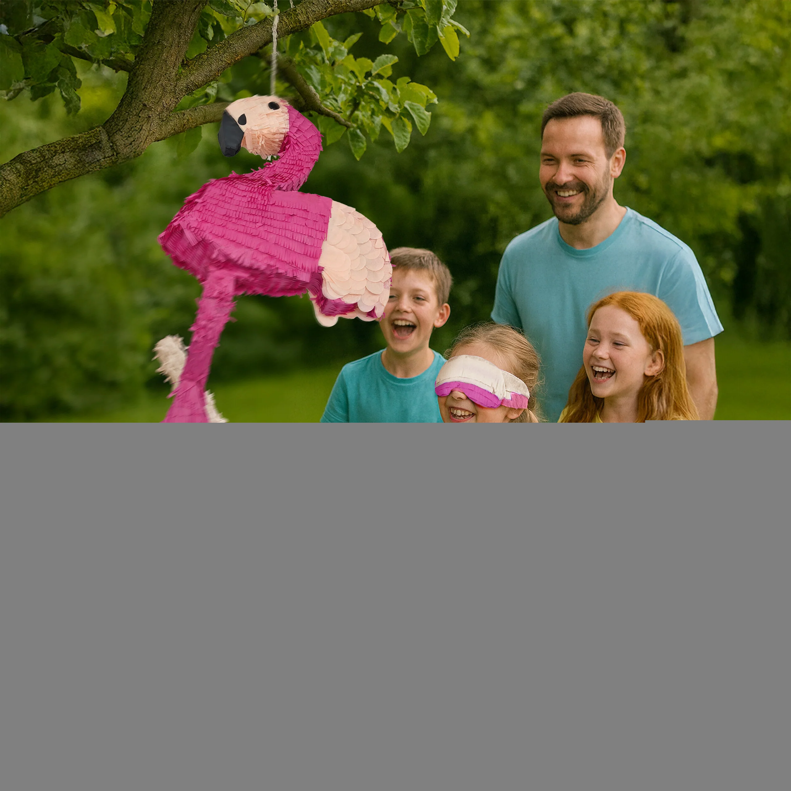 Mit dieser Flamingo-Pinata sorgst Du im Handumdrehen für gute Stimmung auf dem nächsten Kindergeburtstag. Die Partypinata kann mit Süßigkeiten, Spielzeug oder Konfetti befüllt werden. Die Kinder schlagen dann abwechselnd mit verbundenen Augen mit dem Stab auf den Flamingo ein, bis er aufplatzt und die Überraschungen herausfallen. Je höher die Pinata gehängt wird, umso größer ist der Schwierigkeitsgrad. Als lustige Partydeko sorgt die Geburtstagspinata für einen tollen Blickfang.Hinweis: Dekorationsartikel. Kein Spielzeug. Der Artikel kann bei Feuchtigkeit und Nässe abfärben. Nicht in die Nähe von Feuer bringen.