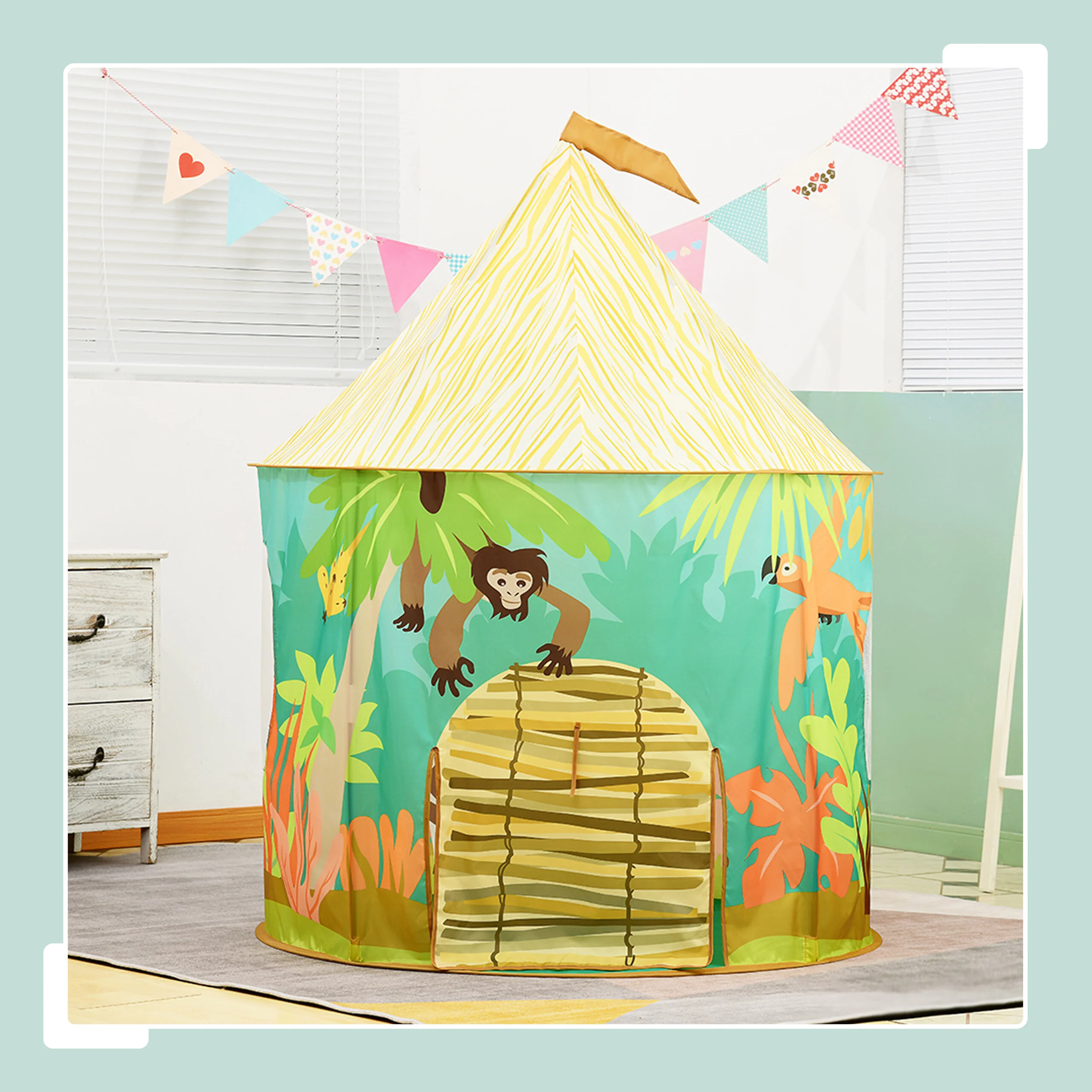 Verwandle das Kinderzimmer in eine fantasievolle Dschungelhütte mit diesem farbenfrohen Spielzelt. Das Zelt bietet kleinen Abenteurern einen perfekten Rückzugsort zum Spielen, Träumen und Geschichten erzählen. Mit einem Eingang mit einrollbarer Tür und der markanten Fahne entsteht ein authentisches Spielerlebnis. Das kompakte Kinderzelt ist leicht aufzubauen, drinnen wie draußen einsetzbar und ideal zum kreativen Spielen.Hinweis: Nicht geeignet für Kinder unter 36 Monaten. Der Aufbau ist durch einen Erwachsenen vorzunehmen. Nur für den Hausgebrauch. Von Feuer fernhalten. Benutzung nur unter Aufsicht von Erwachsenen.